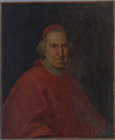 Scuola romana dell'inizio del secolo XVIII "Ritratto di cardinale" olio su tela (cm 70x58) (difetti e restauri)