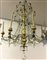 Lampadario a otto luci con fusto in legno intagliato e dorato, bracci in...