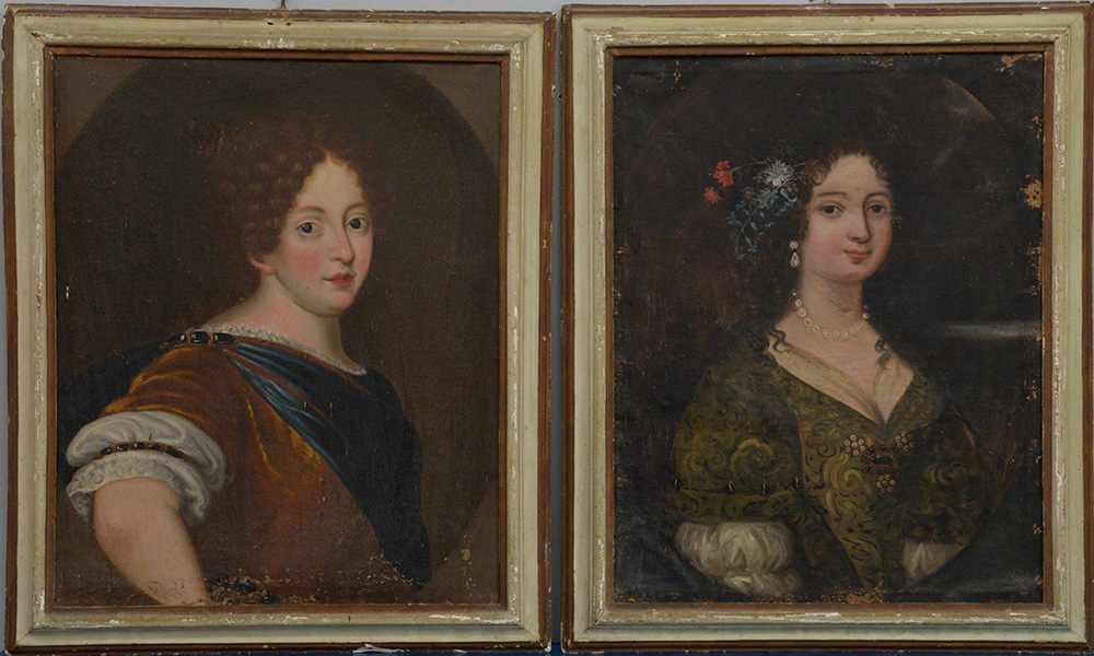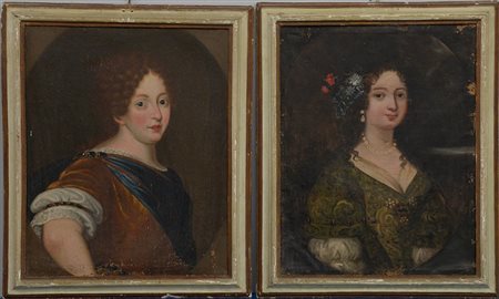 Scuola italiana della fine del secolo XVIII, coppia di dipinti ad olio su tela raffiguranti "Ritratti di dame" (cm 73,5x59) (gravi difetti e restauri)