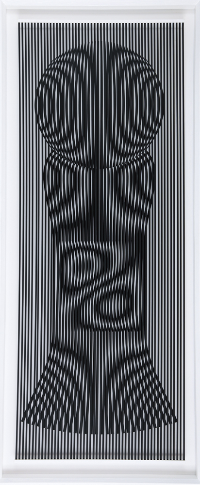 ALBERTO BIASI Padova 02/06/1937 Irresistibile birillo, 2000 tecnica mista e pvc su tavola cm. 162x68, firma, titolo e anno al retro, pubblicato sul catalogo della mostra "Biasi Alberto Biasi" a cura di Floriano De Santi, Verso L'Arte Edizioni, tenutasi dal 29 maggio al 18 luglio 2004 presso il Palazzo Ducale di Urbino, pagina 52.