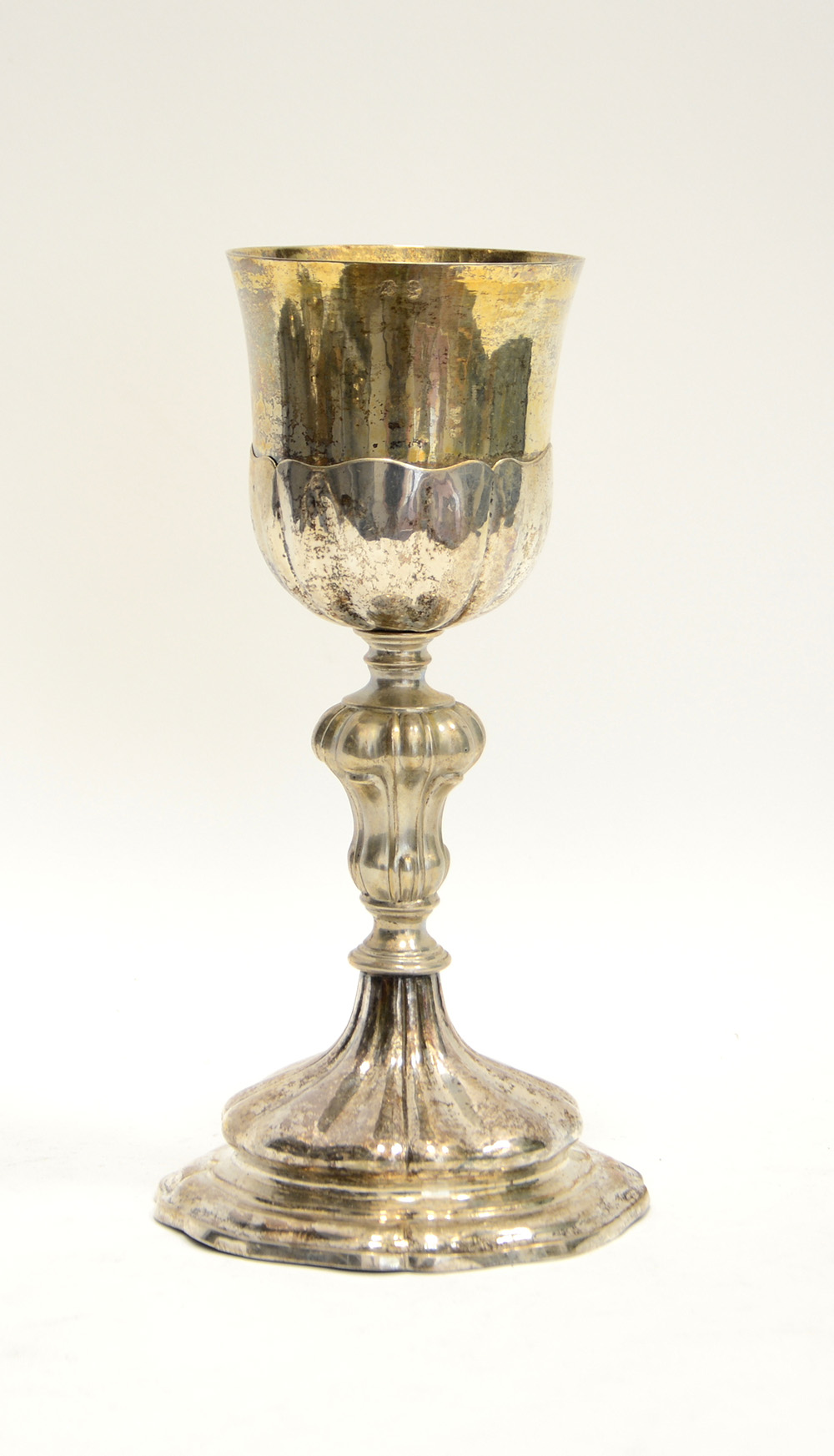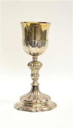 Calice in argento con interno in vermeil. Base sfaccettata. Punzoni non decifrati, secolo XIX (difetti e restauri)