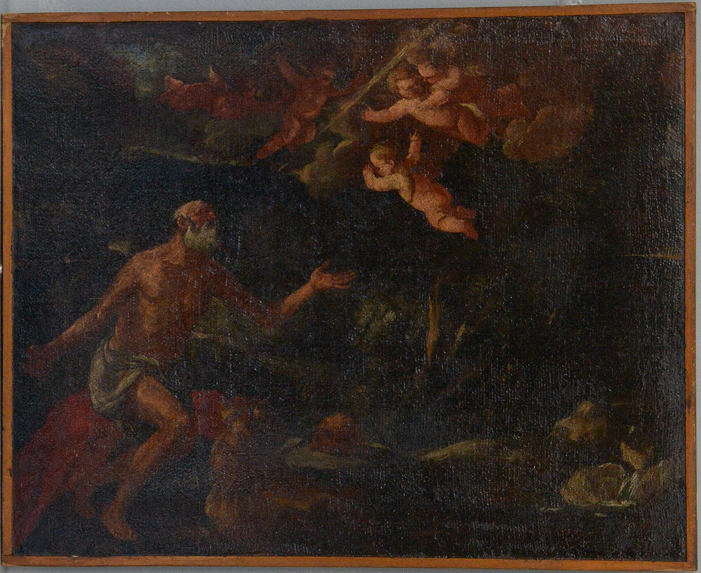 Scuola italiana del secolo XVIII "San Gerolamo in preghiera" olio su tela (cm 32x40) (difetti e restauri)