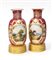 Manifattura del secolo XIX. Coppia di vasi in ceramica decorata in policromia a paesaggi entro riserve in rilievo a dorature (h. cm 38) Su basi in legno dorato non coeve (difetti e restauri)