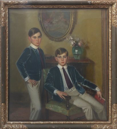 "I due fratelli" olio su tela (cm 126x112) Firmato e datato 1939 in basso a sinistra. In cornice