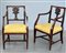 Coppia di poltrone in noce con schienale traforato e intagliato a volatili e gambe posteriori a sciabola. Secolo XVIII (difetti)