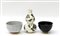Due ciotole moncrome e un vaso a doppia zucca a decoro floreale (h max cm 19)