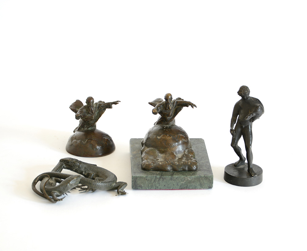 Lotto composto da quattro sculture in bronzo di diverso autore e soggetto (difetti e mancanze)
