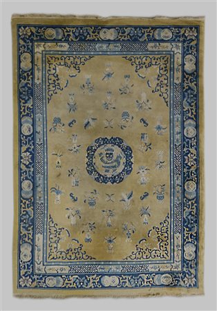 Tappeto cinese, Pechino fine secolo XIX. Decoro con medaglione tondo con...