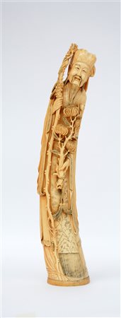 Shoulao con ramo di peonie in avorio (h. 75 cm.)(difetti)Cina, inizio sec....