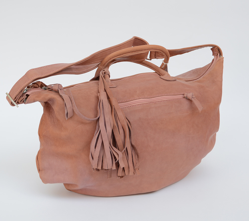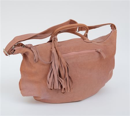 Borsa da donna in pelle color cipria con manici e tracolla (cm 46 ca) (difetti)
