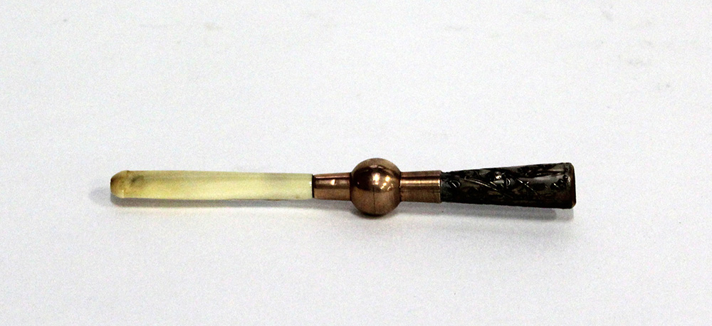 Bocchino in schiuma con estremità in metallo e oro basso decorato a motivi floreali (cm 11) (difetti)