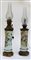 Due lampade ad olio con corpo decorato in policromia a fiori (h cm 50)...