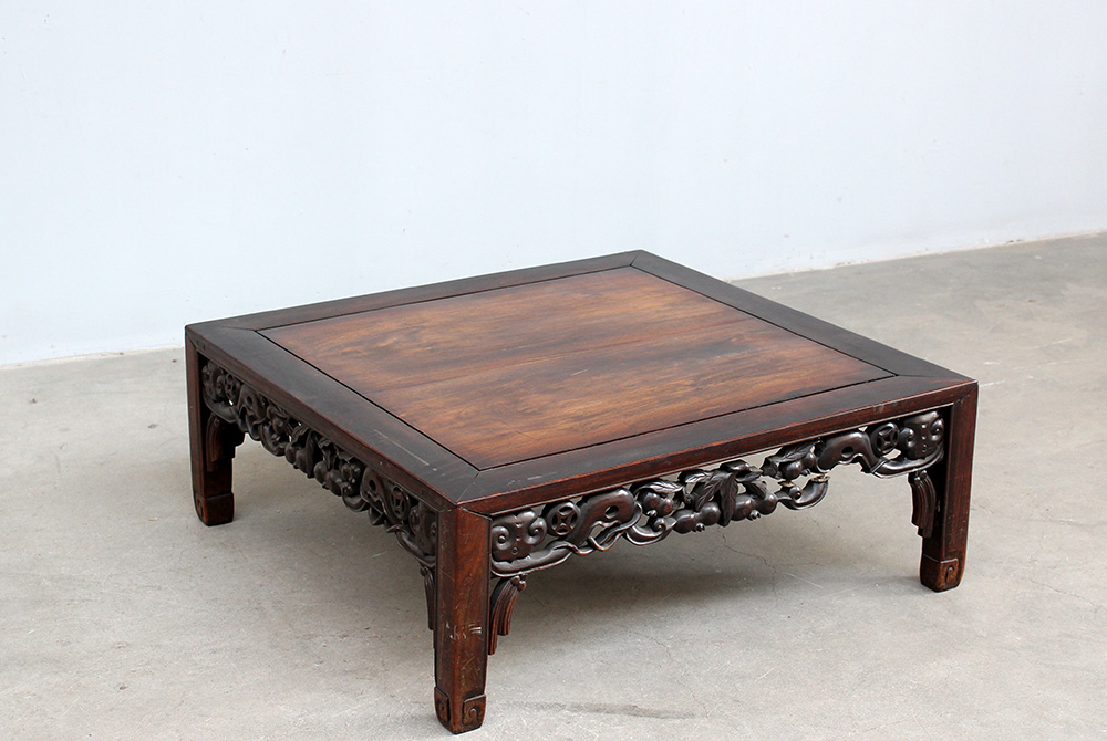 Tavolino basso di forma quadrata con fasce in legno intagliate (cm 84x31x84) (difetti) Cina, sec. XX