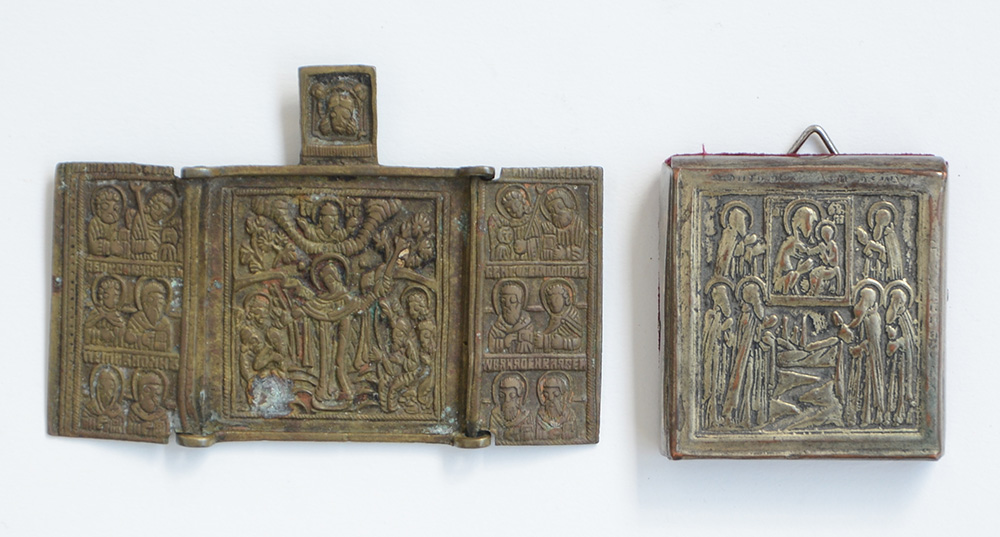 Lot 944 | Lotto composto da due antiche icone in metallo di cui una tripartita (difetti)