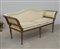 Divano a tre posti in noce con braccioli e schienale mossi, rivestimento con...