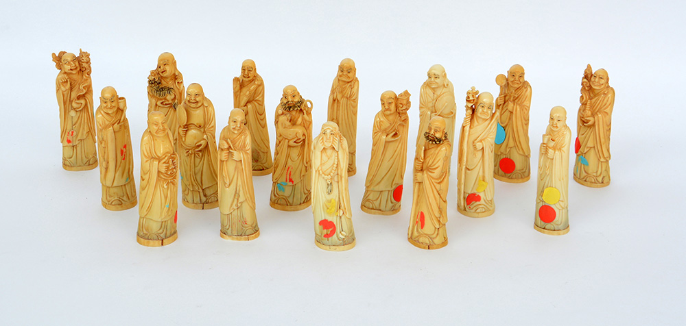 Lot 967 | Diciassette figure in avorio di monaci e divinità Cina, inizio sec. XX (h. 12...