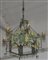 Laterna esagonale a sei luci in ferro battuto a riccioli e metallo laccato decorato a motivi vegetali (h cm 120)(difetti)