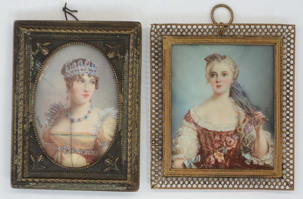 Lotto composto da due miniature di diverso autore raffiguranti dame (difetti)