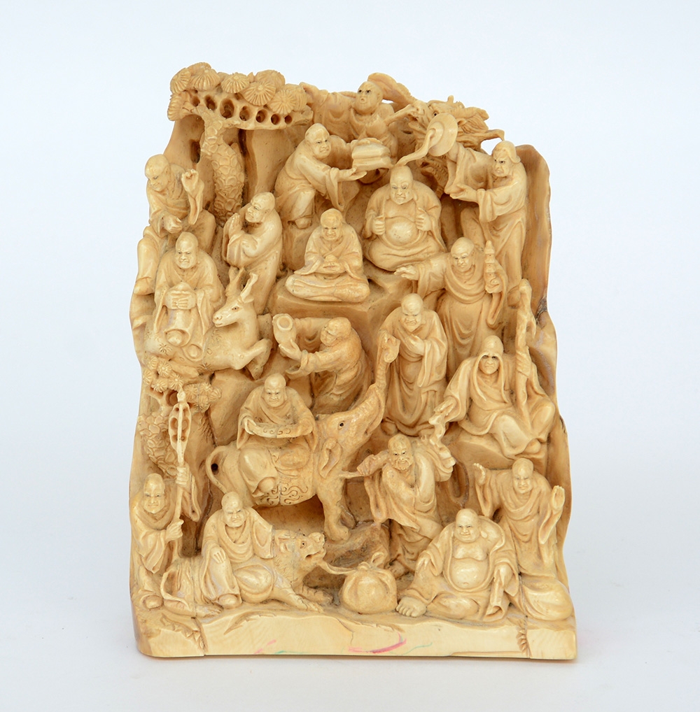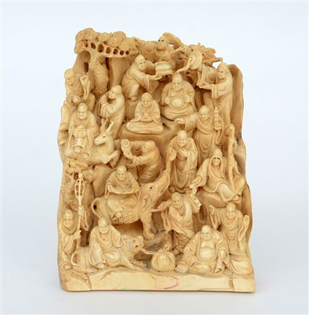 Gruppo scultoreo in avorio raffigurante immortali taoisti con servitori (h....