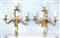 Coppia di appliques in metallo dorato a quattro luci di forma naturalistica...
