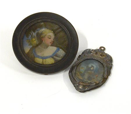Lotto composto da due verre peints di soggetto diverso, in cornici, di cui una in argento (difetti)
