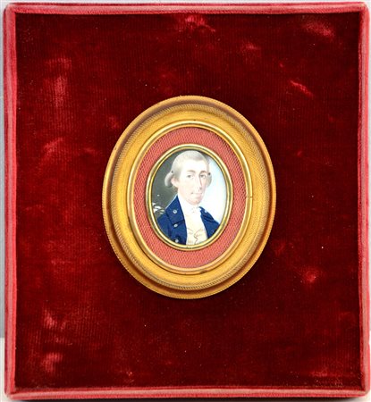 Maestro del secolo XIX "Ritratto di gentiluomo" miniatura su avorio (cm 4x3,5) (difetti)