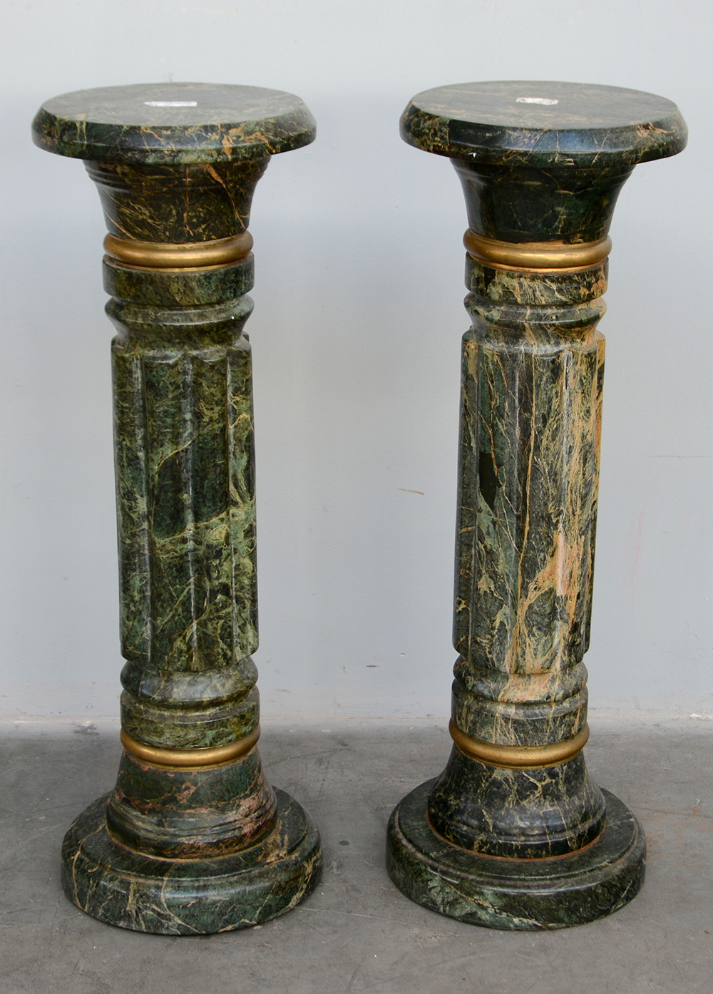 Coppia di colonne in marmo con fusto scanalato decorato da elementi in bronzo (h. cm 88)