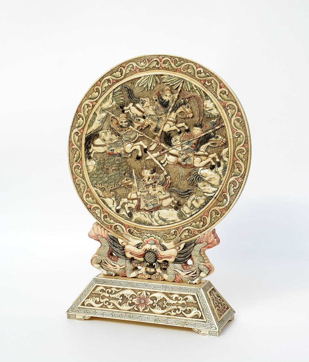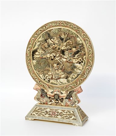 Disco in osso decorato a tasselli con base (h. 55 cm tot)(difetti)-EN.