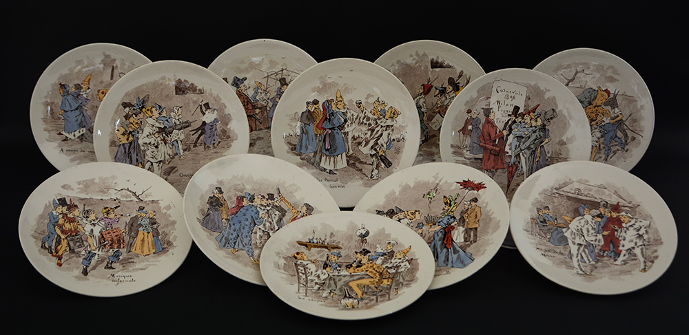 Manifattura di Sarreguemines, gruppo di dodici piatti della serie "Carnaval...