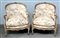 Coppia di poltrone a pozzetto in legno laccato, schienale e fascia intagliati...