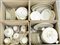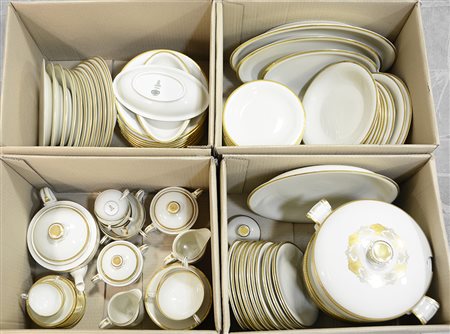 Manifattura tedesca Heinrich, lotto di tre cartoni contenenti parte di servizio da tavola in porcellana con profili dorati (difetti)