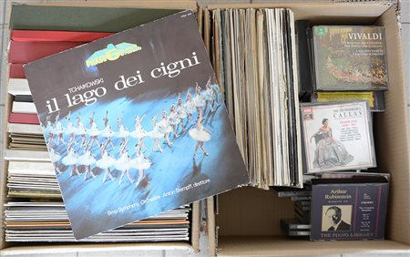 Lotto di due cartoni contenenti numerosi vinili e compact disc, principalmente di musica classica (difetti)