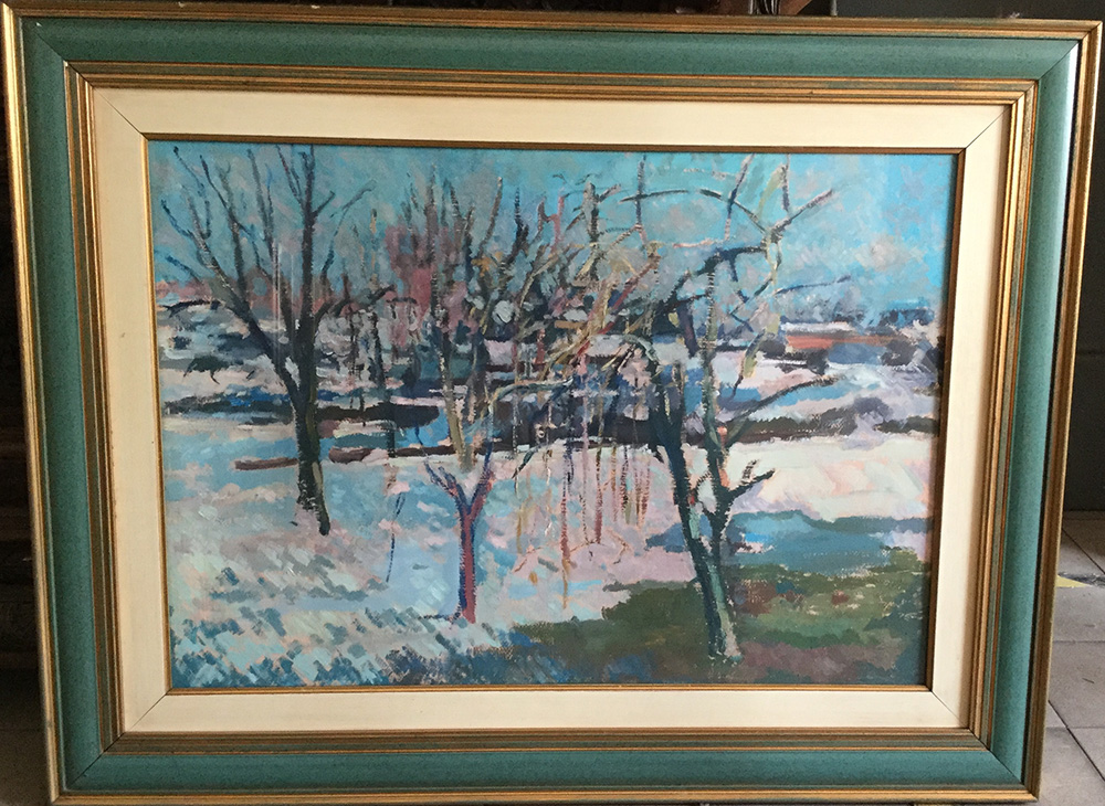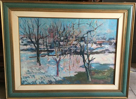 Ignoto "Paesaggio invernale" olio su cartone (cm 50x70) in cornice