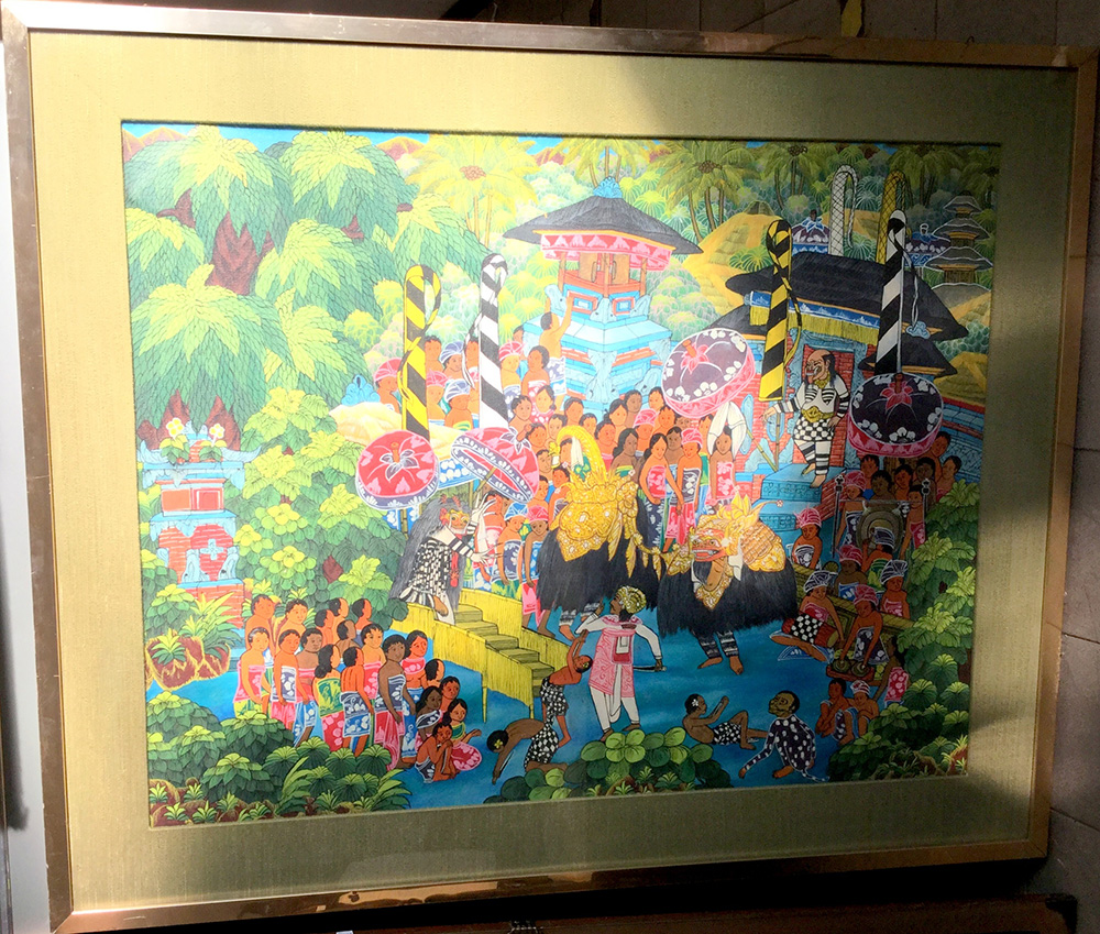 Lotto composto da due dipinti orientali di misure diverse raffiguranti paesaggio con figure e corteo nuziale, in cornici