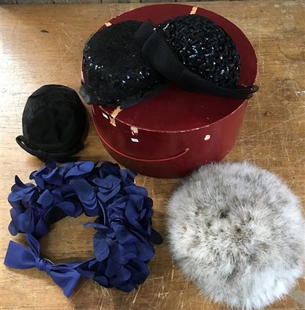 Lotto composto da quattro cappelli ed un ornamento da donna