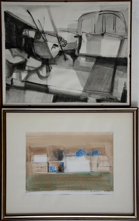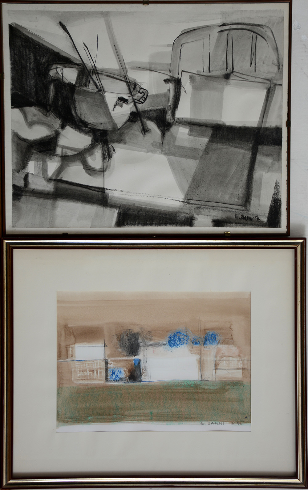 Lotto di tre opere firmate Ezio Barni e Rosignano. Tecniche differenti, in...