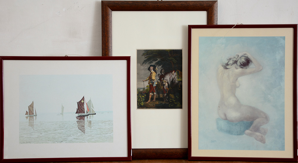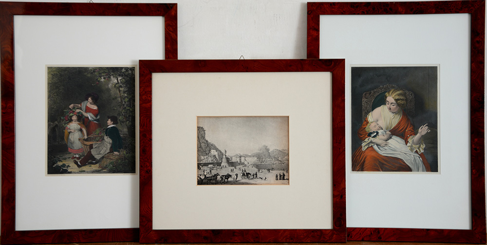 Lotto di nove riproduzioni di soggetto e dimensioni differenti. In cornici (difetti)