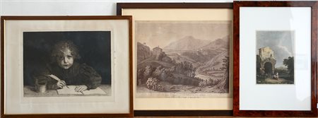 Lotto di nove riproduzioni di soggetto e dimensioni differenti. In cornici...