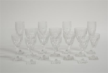 Servizio di bicchieri in cristallo incolore, molato con piede quadrato,...