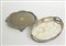 Lotto composto da un salver in metallo argentato con bordo decorato a foglie...