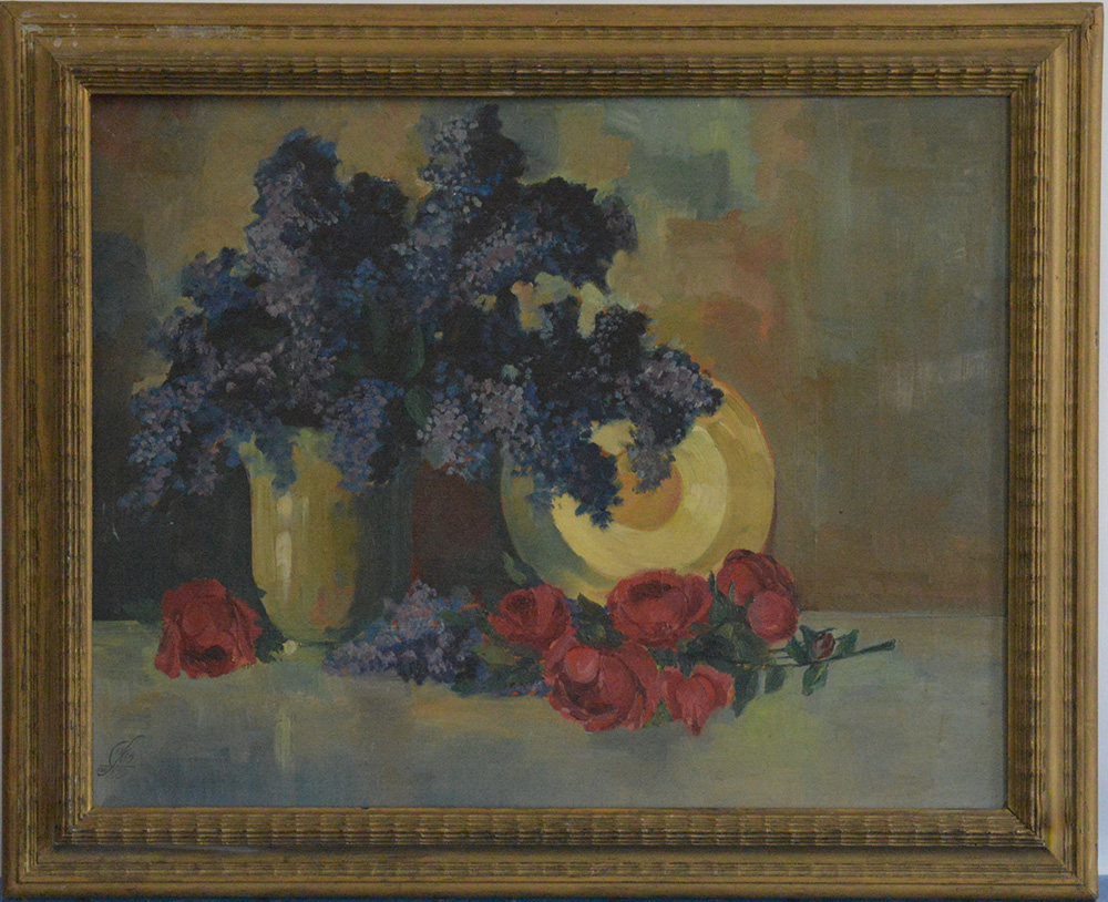 Coscia - "Natura morta con fiori" olio su compensato (cm 53x68) firmato e datato 1939 in basso a sinistra, in cornice (lievi difetti)