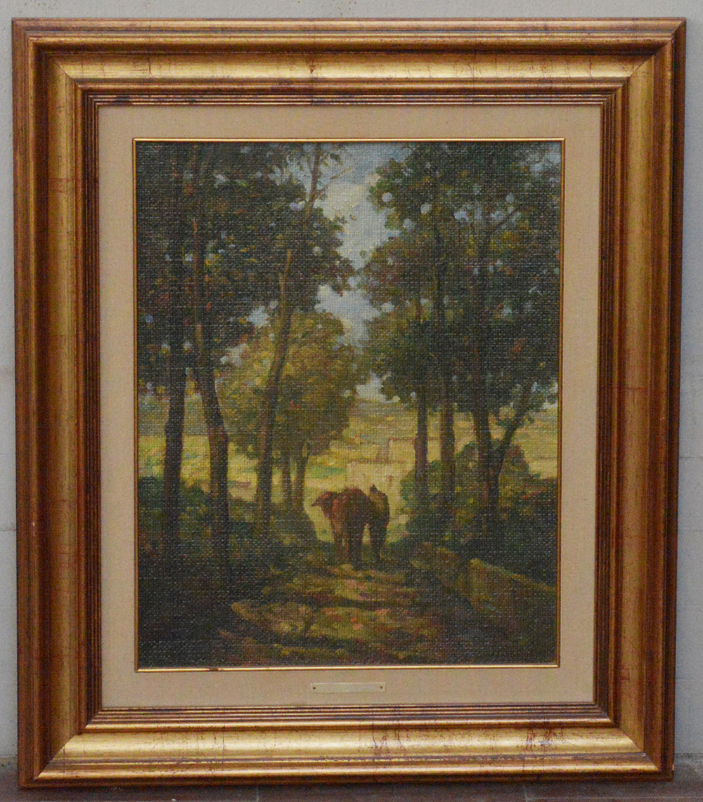"Il ritorno" olio su tela (cm 51x40) Firmato in basso a destra. Esposizione: Palermo 1985, Galleria "Il Cenacolo" cartiglio al retro. In cornice