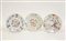 Tre piatti in porcellana a smalti Imari decorati con motivi floreali (d. max...