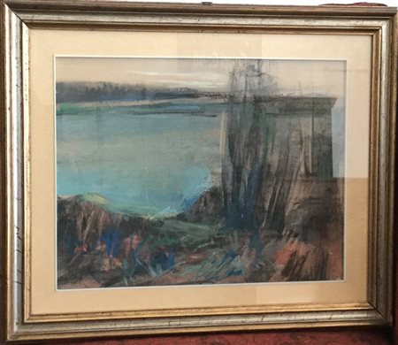Ignoto "Paesaggio lacustre" pastello su carta (cm 40x50) firamto in alto a...