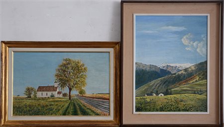 E. Migliau - lotto di due dipinti ad olio su tela raffiguranti paesaggi, firmati e datati in basso a sinistra (cm 60x46 e 40x59) (lievi difetti)