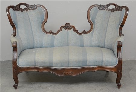 Divano Luigi Filippo a due posti in legno intagliato con imbuttiture...