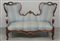 Divano Luigi Filippo a due posti in legno intagliato con imbuttiture rivestite in tessuto celeste. Secolo XIX (difetti)