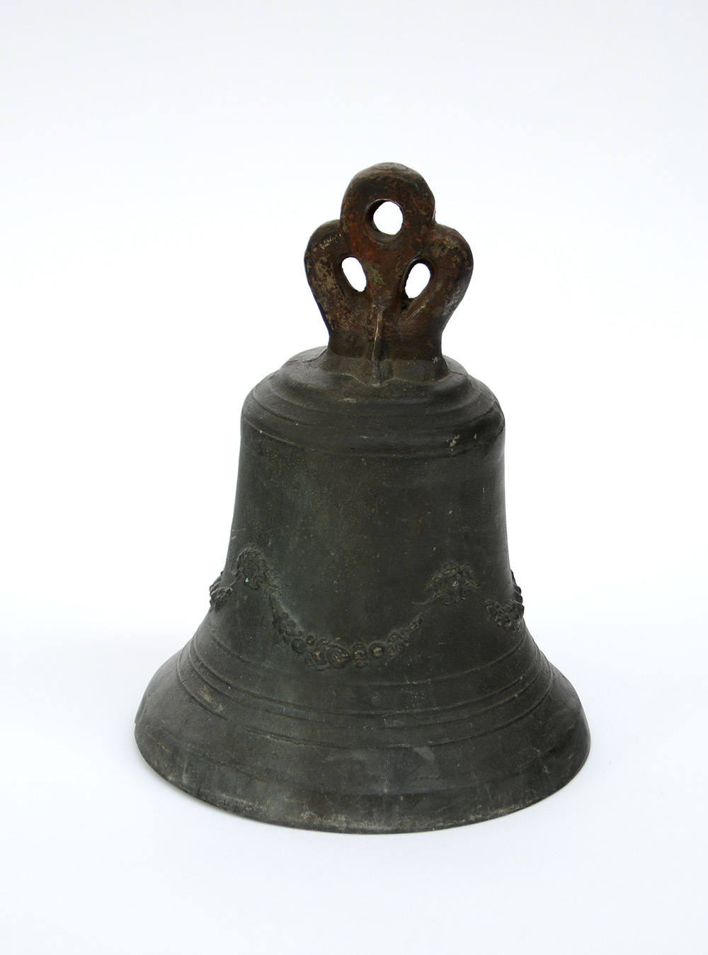 Campana in bronzo con piccoli decori a festoni (h cm 35) (difetti)