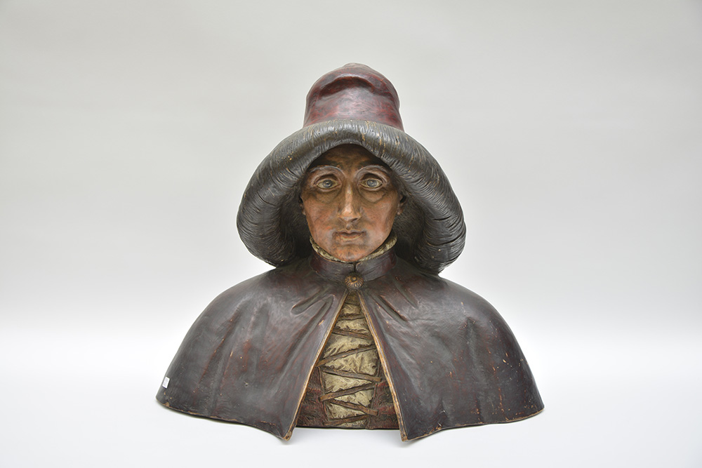 Arte del secolo XIX. Mezzobusto in terracotta decorata in policromia (h. cm 55)