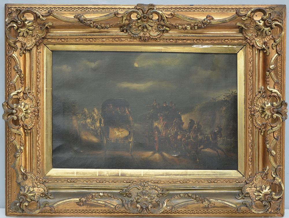 H.F. Jones "Diligenze" olio su tela (cm 41x61) Firmato in basso a sinistra....